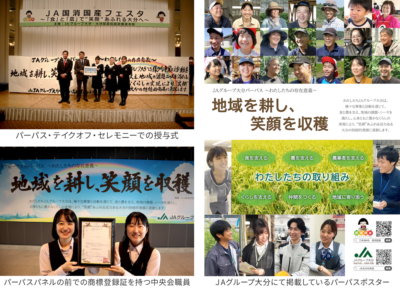 JAグループ大分では、第32回JA大分県大会で、わたしたちが自ら「JAとはどのような組織なのか」について改めて確認するとともに、それを基として、JAグループ大分の存在意義を整理した上で、JAグループ大分の将来を担う若手職員が中心となりながら、役職員の総意で「JAグループ大分パーパス」(JAグループ大分の存在意義)を策定しました。